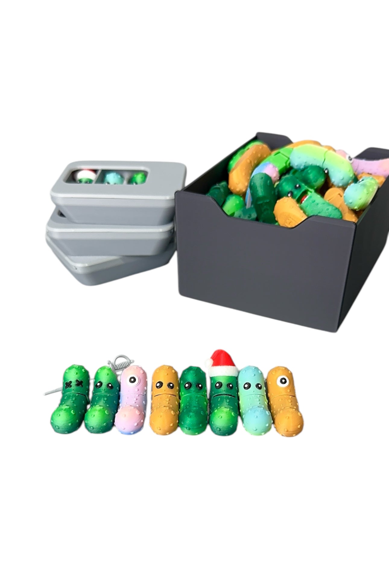 Introducing the Fidget Pickles, a unique and collectible item that is sure to delight pickle fans. These adorable 3D printed figurines come in various colors and expressions, making them a fun addition to any collection.